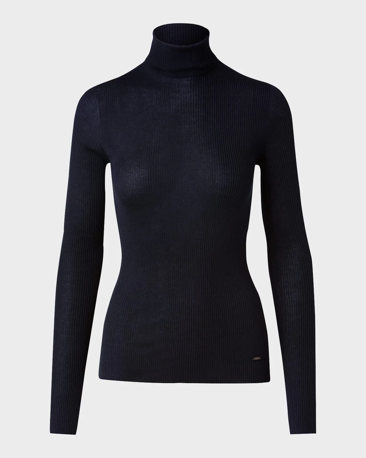 Akris Knit pullover, cashmere silk fine rib, Mock neckline Long sleeves Hip length & nbsp; Seamless Pullover style Cashmere/silk Dry clean, professional cleaning recommended Made in Italy