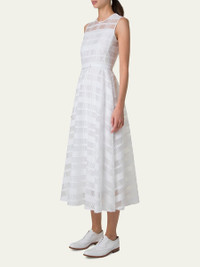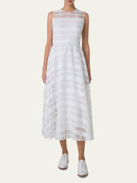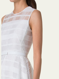 Akris dress crafted from silk organza in a check pattern Round neckline Sleeveless Fitted waist Hem falls below the knee A-line silhouette Back zipper closure Silk Dry clean Made in Romania Online Inquiries: BGS21_B9JZB| Store Inquiries: #4888069