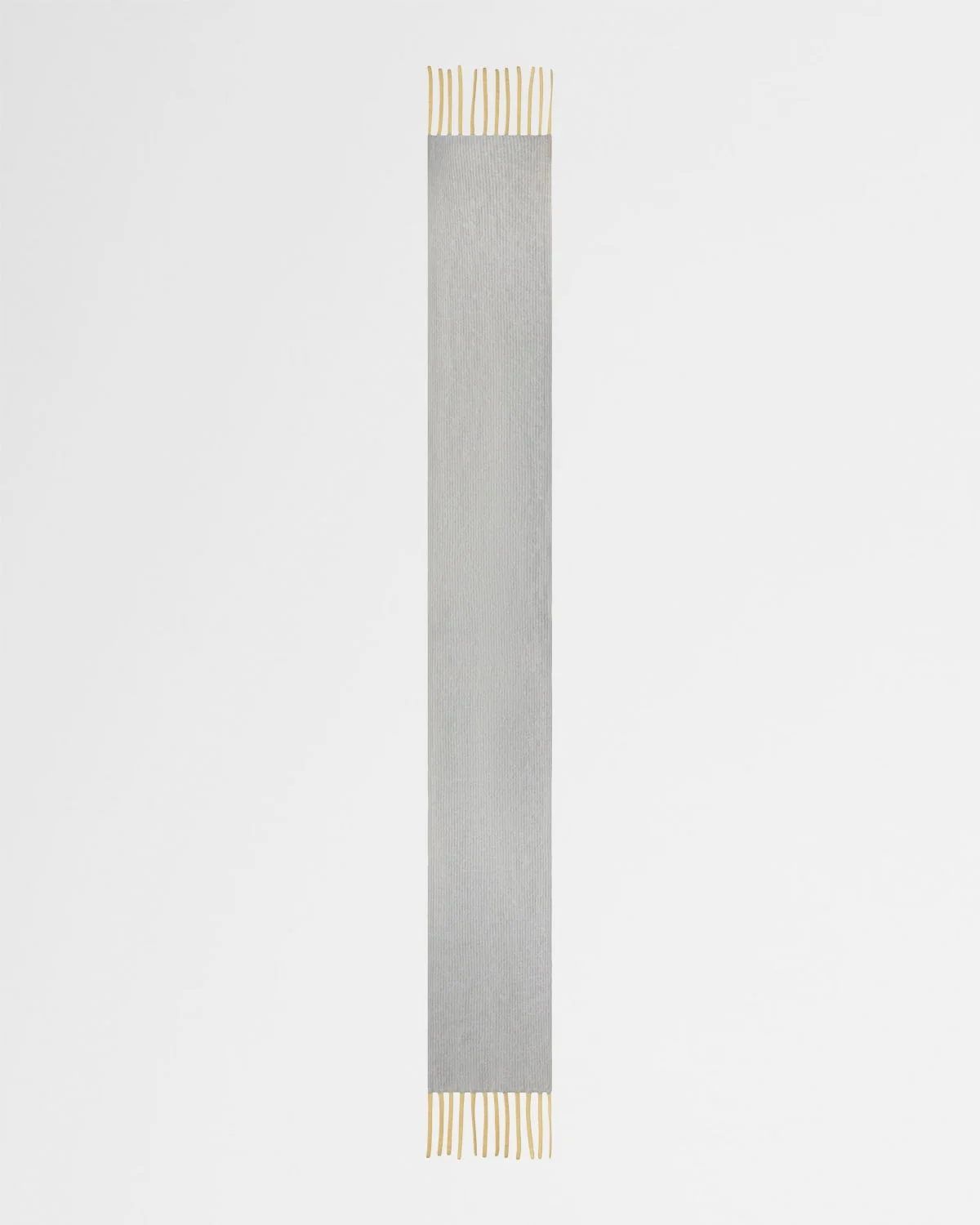 Akris scarf is knit in a soft cloud cashmere with contrast fringed ends May be styled multiple ways Cashmere Dry clean Imported