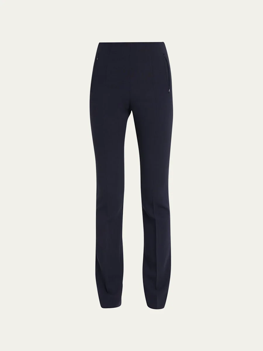 Akris "Constance" double-face wool pants. Approx. measurements: 9.5" rise; 33.5" inseam; 44.5" outseam.. No-yoke style waist; regular rise. Side zip pockets. Fitted silhouette. Straight hem. Wool/nylon; viscose lining. Dry clean. Imported. Model is 5'10"/177cm. Online Inquiries: BGS21_TQ7P2| Store Inquiries: #865481