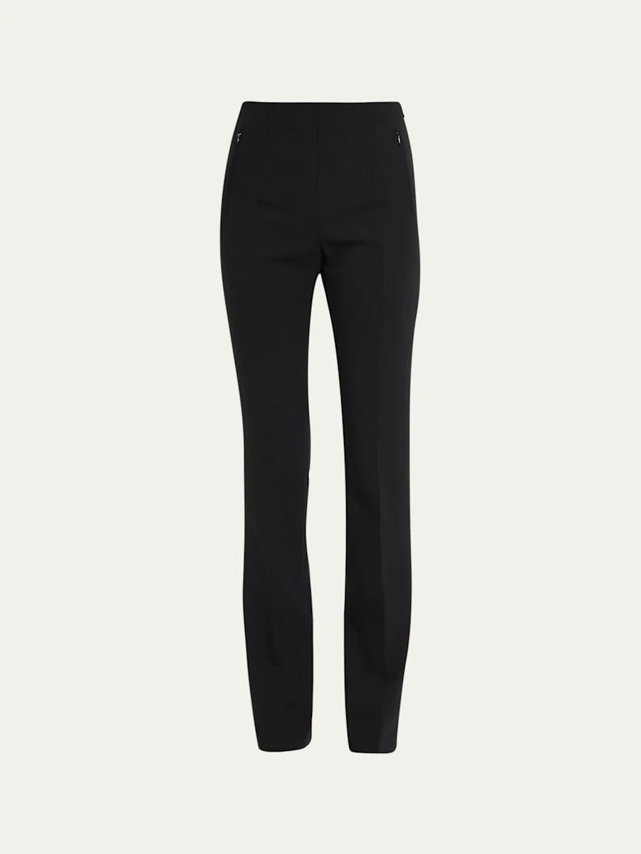 Akris "Constance" double-face wool pants. Approx. measurements: 9.5" rise; 33.5" inseam; 44.5" outseam.. No-yoke style waist; regular rise. Side zip pockets. Fitted silhouette. Straight hem. Wool/nylon; viscose lining. Dry clean. Imported. Model is 5'10"/177cm. Online Inquiries: BGS21_B972P| Store Inquiries: #865481