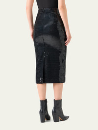 Akris corded sequin midi skirt shimmers with sculptural texture, balancing luminous detail with refined elegance. Sits at the natural waist Vented back Hem falls below the knee Pencil silhouette Concealed back zip closure Polyester Made in Romania Online Inquiries: BGS21_BATCB| Store Inquiries: #5266550