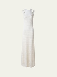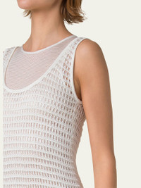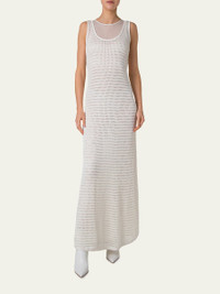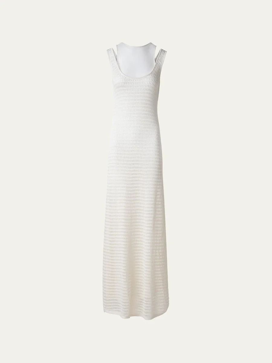 Akris maxi dress with crochet overlayer and knit underlayer Crew neckline Sleeveless Full length A-line silhouette Keyhole button back Viscose Dry clean Made in Romania Online Inquiries: BGS21_B9QKF| Store Inquiries: #4945475