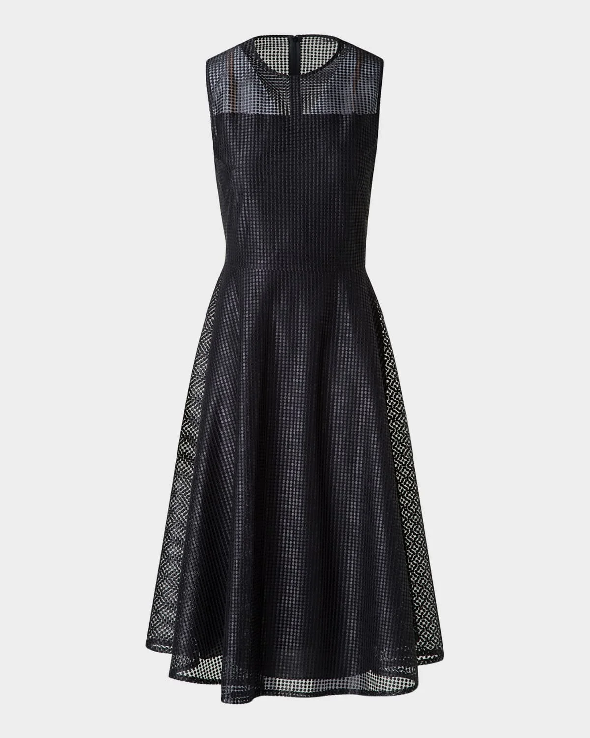 Akris dress in dot embroidered mesh with a sheer chest yoke Round neckline Sleeveless Fitandflare silhouette Knee length Invisible back zip Nylon/polyamide/silicone/elastane Made in Italy
