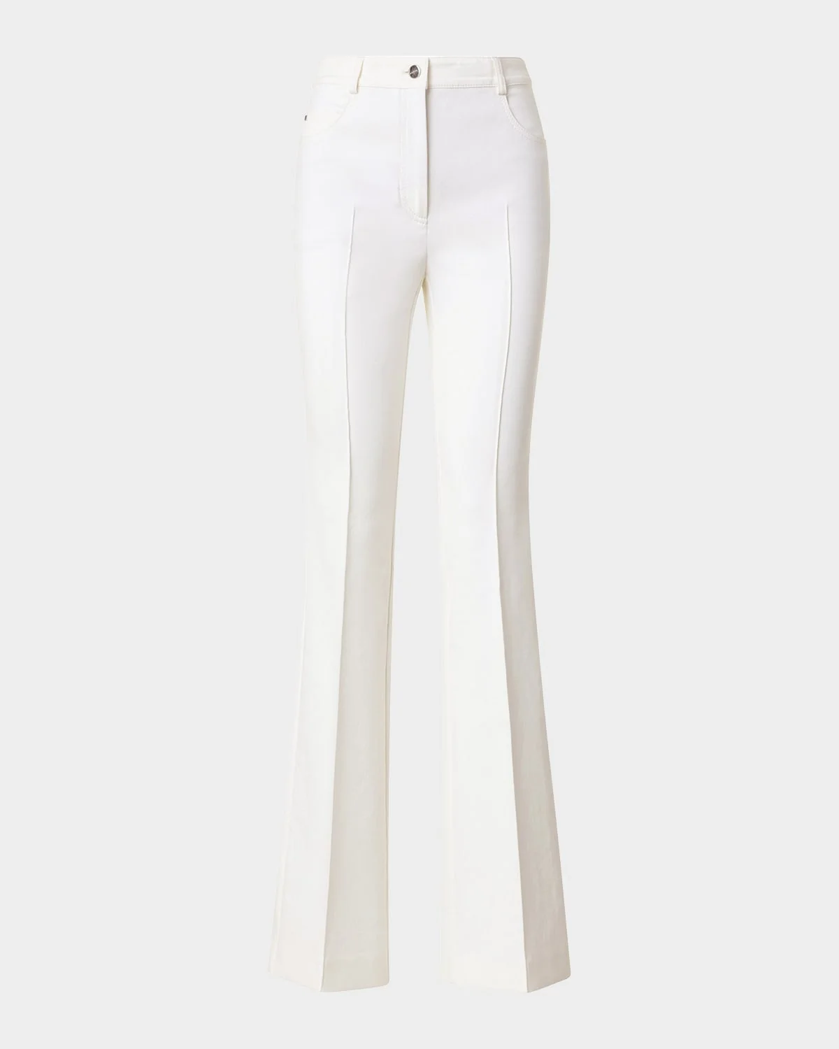 Akris "Farid" stretch doubleface pants High rise Full length Bootcut legs Fivepocket style Button/zip fly; belt loops Cotton/silk/elastane Made in Portugal