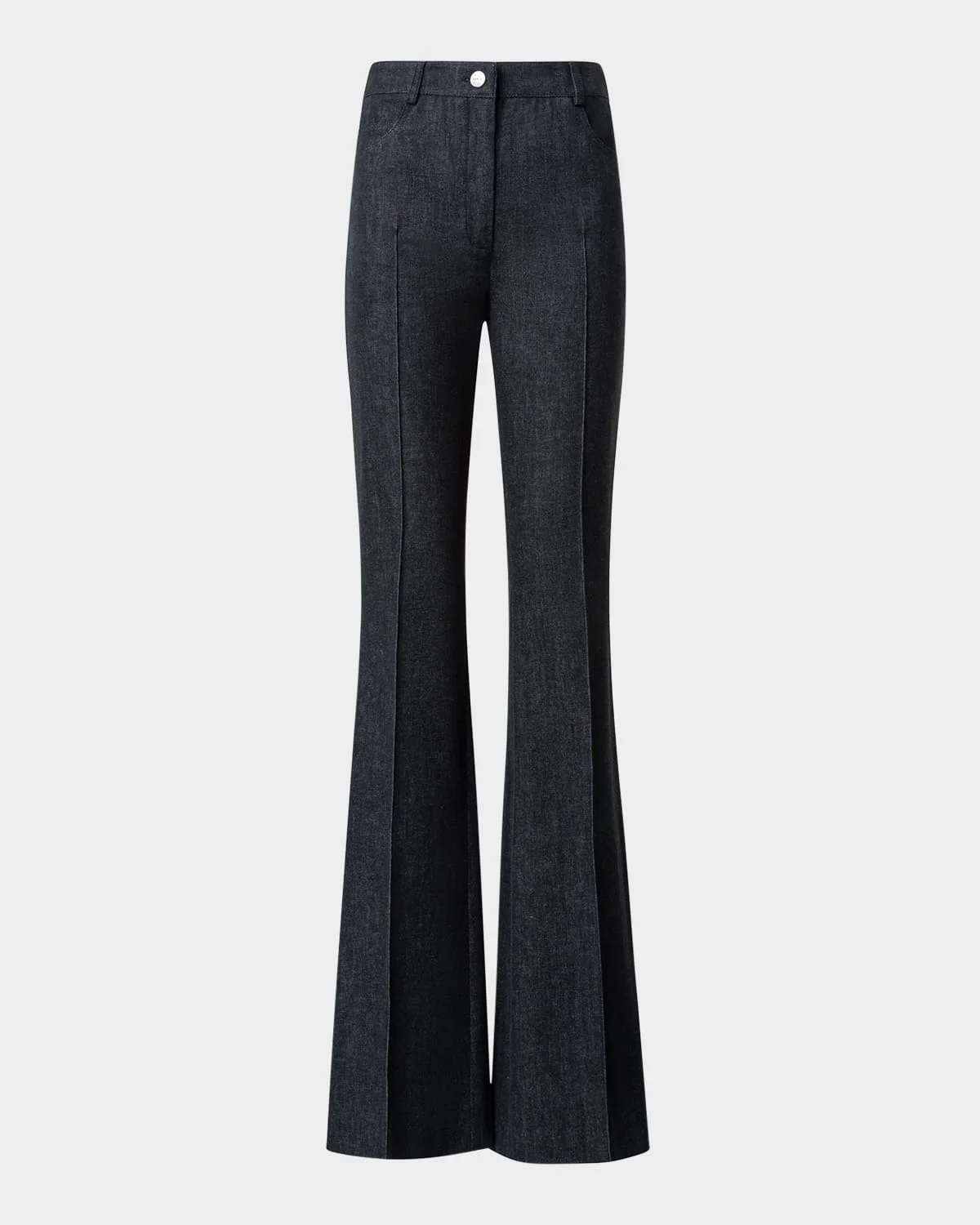 - Akris "Farid" bootcut jeans in stretch denim - High rise - Four-pocket style - Fitted through the hip and thigh - Full length - Button/zip fly; belt loops - Cotton/polypropylene - Imported