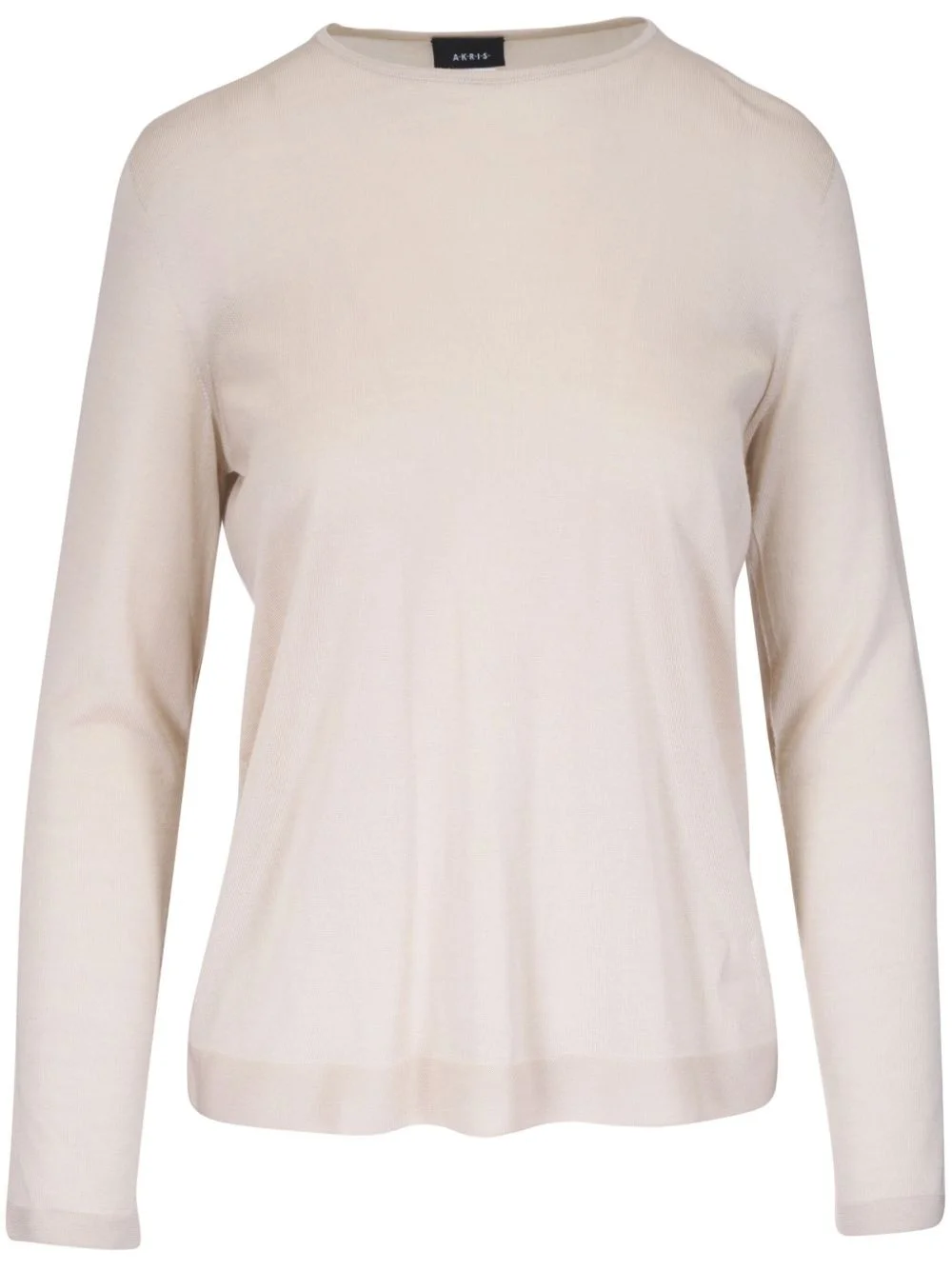 fine-knit jumper Highlights - Light beige - Crew neck - Long sleeves - Ribbed cuffs and hem Made in United States Composition Cashmere 70%, Silk 30%