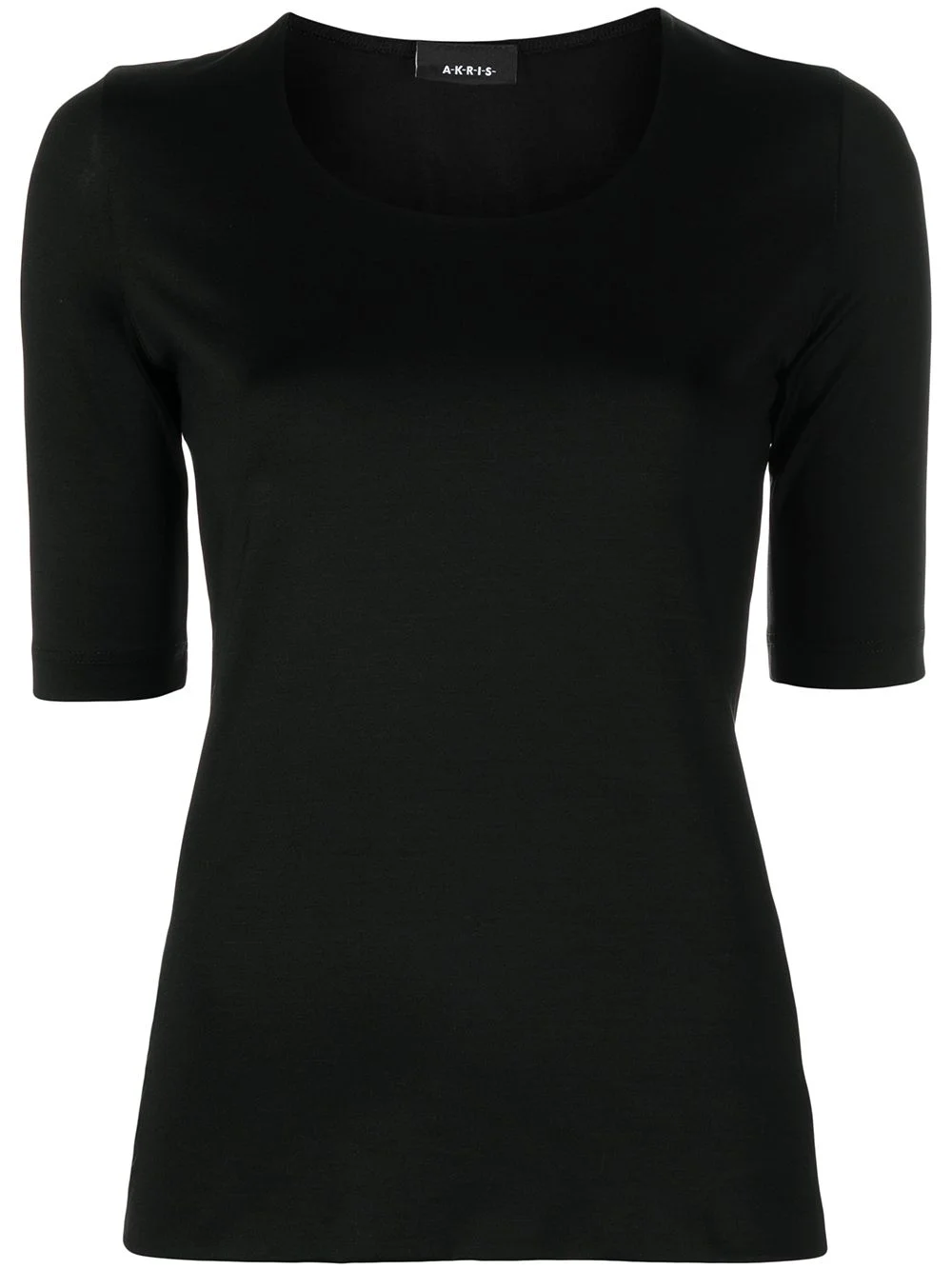 fitted short-sleeve knit top Highlights - Jet black - Modal - Ribbed edge - Round neck - Short sleeves - Straight hem Imported Composition Modal 100% SIZE & FIT Model measurements Height 5 ft 10 in(1.77 m) Bust/Chest 33.85 in(86 cm) Hips 35.03 in(89 cm) Waist 24.01 in(61 cm) FittingInformation This piece fits true to size. We recommend you get your regular size Cut for a close fit Made with a mid-weight fabric Washing instructions Machine Wash