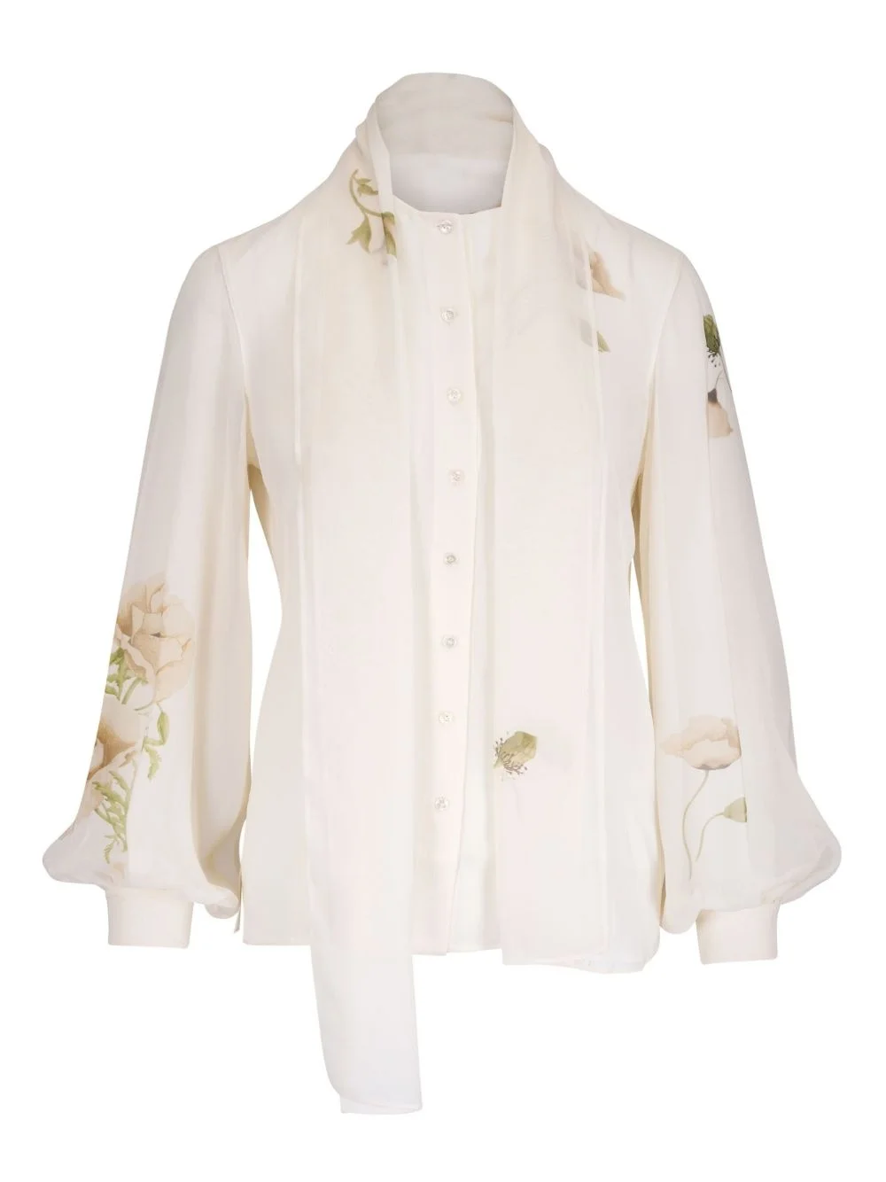 floral-embroidered blouse Highlights - Ivory white - Button fastening - Long sleeves - Puffed cuffs - Front tie detail - Floral embroidery - Back detail Made in Italy Composition Silk 100%