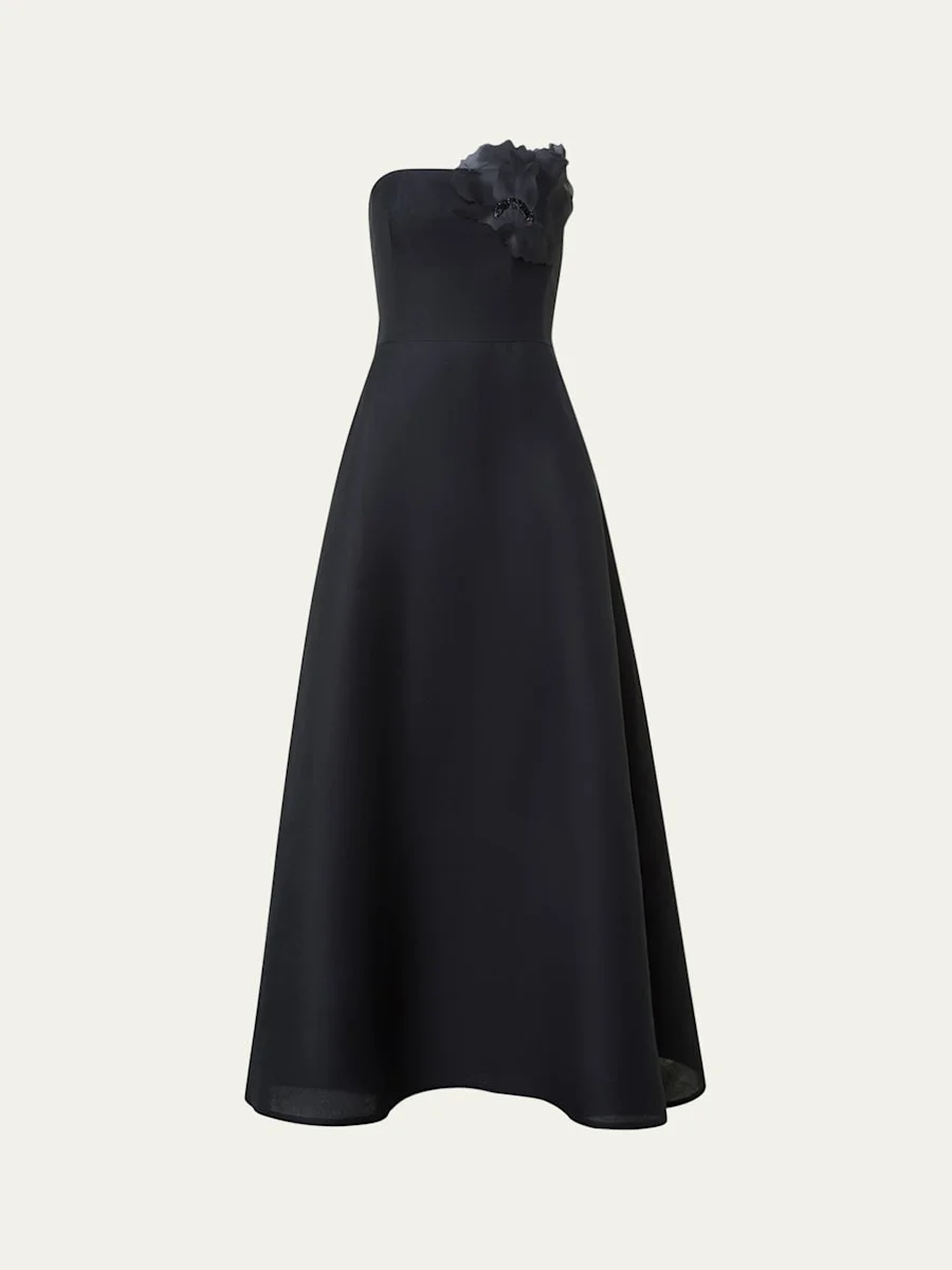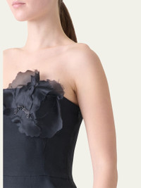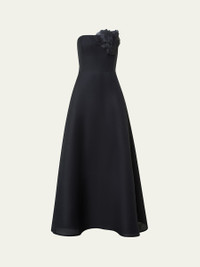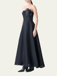 Akris silk organza gown embellished with a 3D flower corsage Strapless neckline Sleeveless A-line silhouette Full length Invisible side zip Silk Lining: Viscose/silk Dry clean Made in Romania Online Inquiries: BGS21_B9UE5| Store Inquiries: #4970734