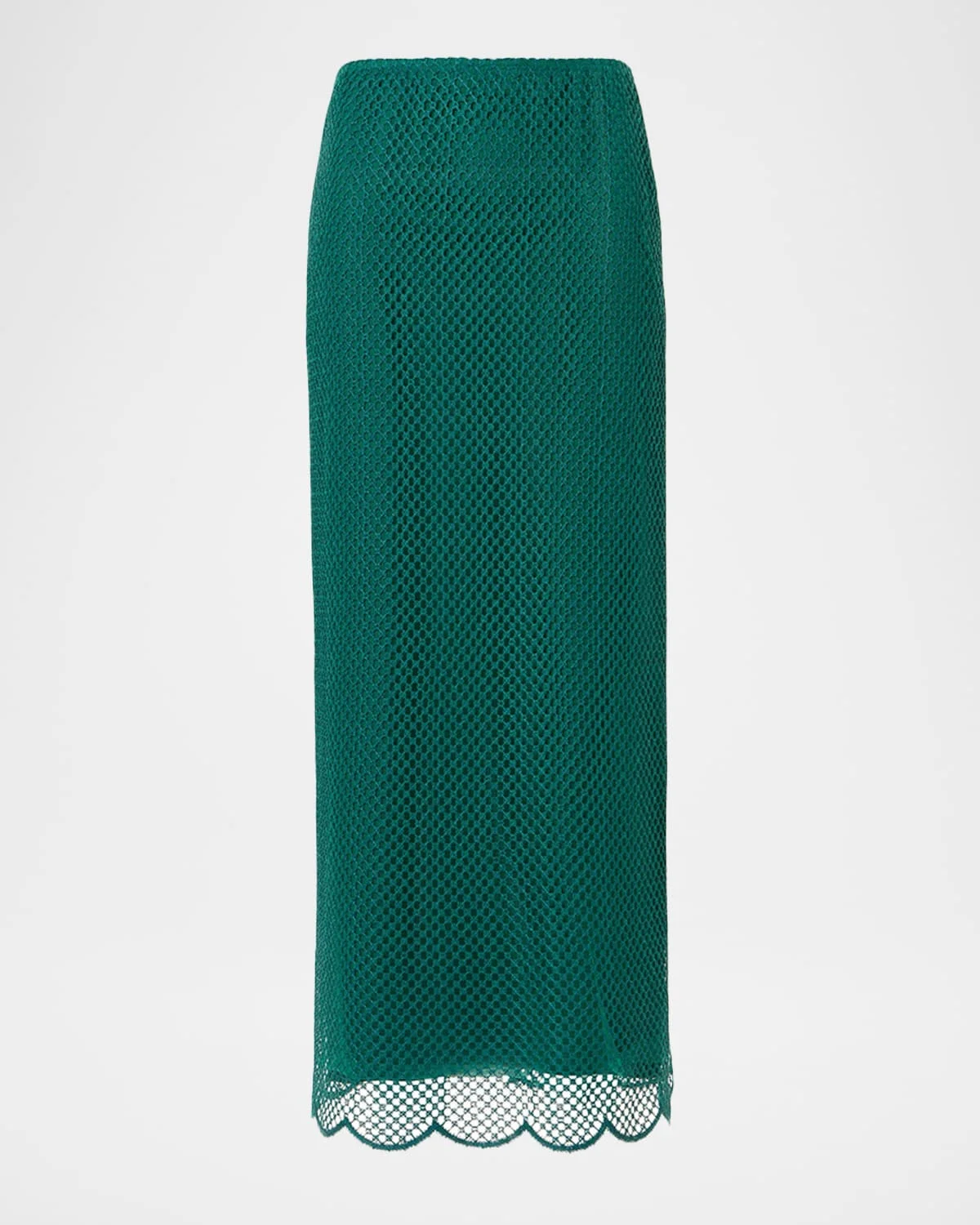 Crafted from grid embroidered crochet knit, this skirt from Akris falls to a straight silhouette and is finished with a & nbsp;scalloped hem High waist Skirt falls straight from hip to hem Hem falls below the knee Invisible back zip Polyester Lining: Viscose/spandex Dry clean Made in Romania SIZE & FITModel measurements: 5 & apos;10" tallModel is wearing a US size 4/Small