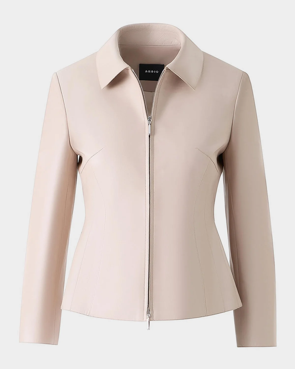 Crafted of luxurious leather, akris & apos; hectate jacket is designed with a spread collar, long sleeves, and front zip closure. spread collar long sleeves front zip closure 100% leather lining: 92% silk/8% elastane dry clean by a leather specialist made in switzerland Akris HecateLeatherLining: Silk/elastaneDry cleanMade in Switzerland