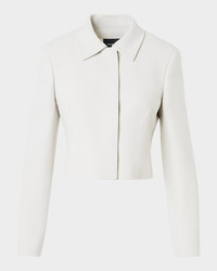 Akris "Helios" jacket is crafted from a wool crepe tailored with slimming waist darts Spread collar; singlebreasted front Long sleeves; slit cuffs Padded shoulders Slim fit Hip length Concealed button front closure Virgin wool Made in Switzerland