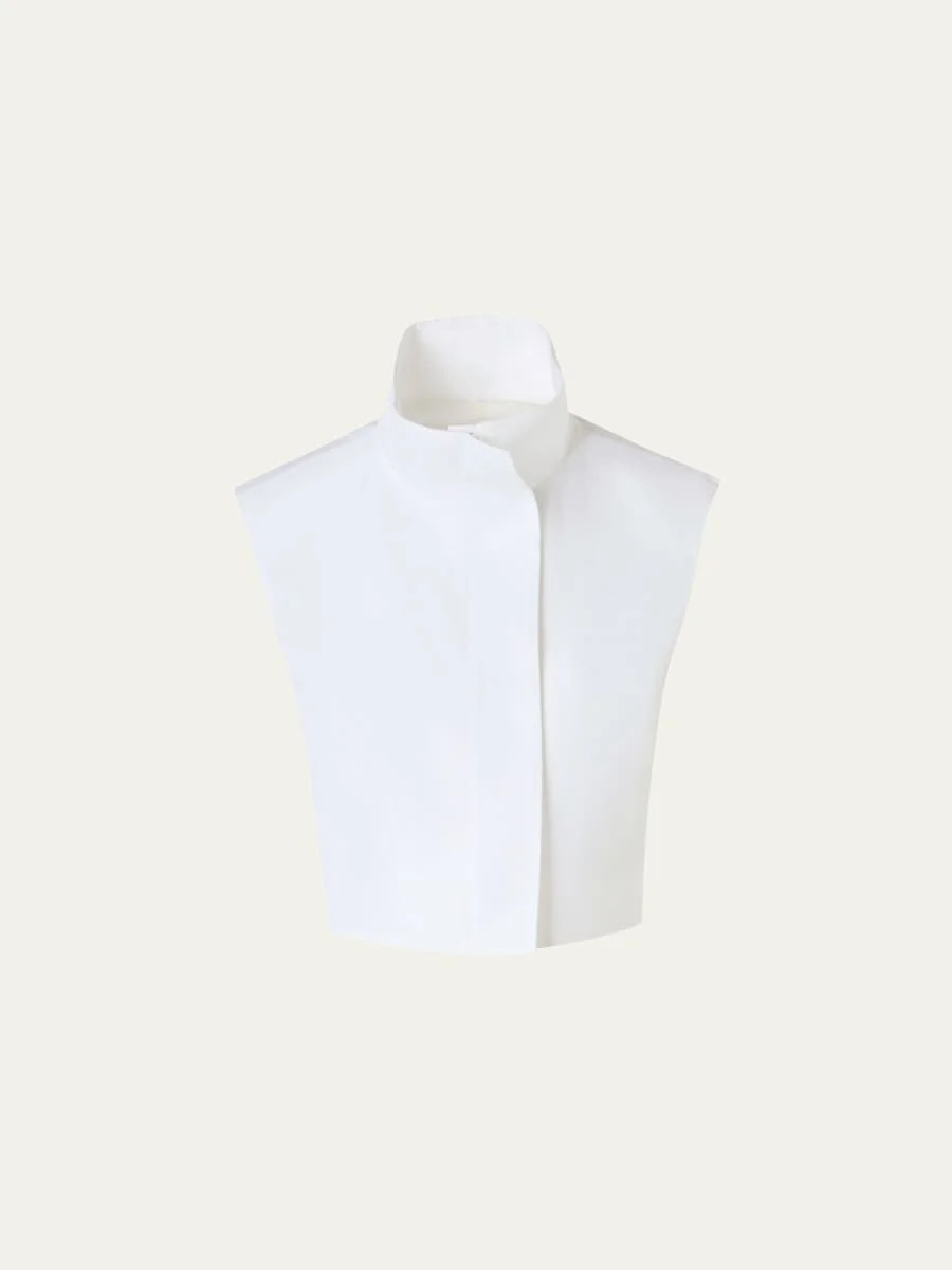 Crafted from doubleface cotton, this Akris "Hester" gilet embodies the house's signature architectural design ethos. Standup collar Sleeveless Cropped length Straight hem Concealed button front closure Cotton/nylon/polyamide Dry clean Made in Switzerland