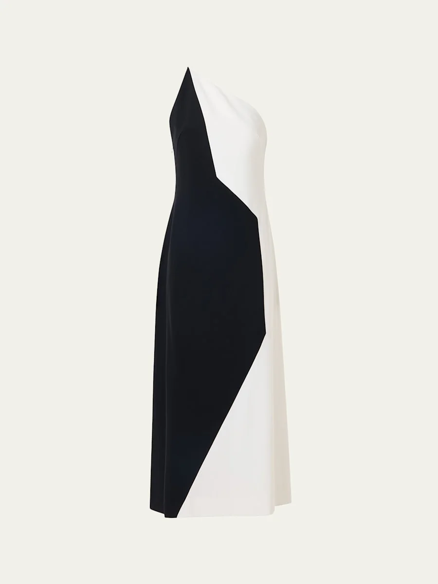 High Plains Patchwork Crepe One-Shoulder Midi Dress
