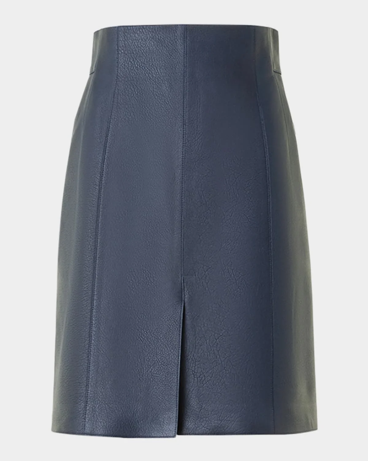 - Akris skirt in lamb nappa leather featuring a front slit - High waist - Side split pockets - Knee length - A-line silhouette - Back zip - Leather - Dry clean - Made in Romania