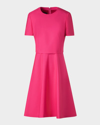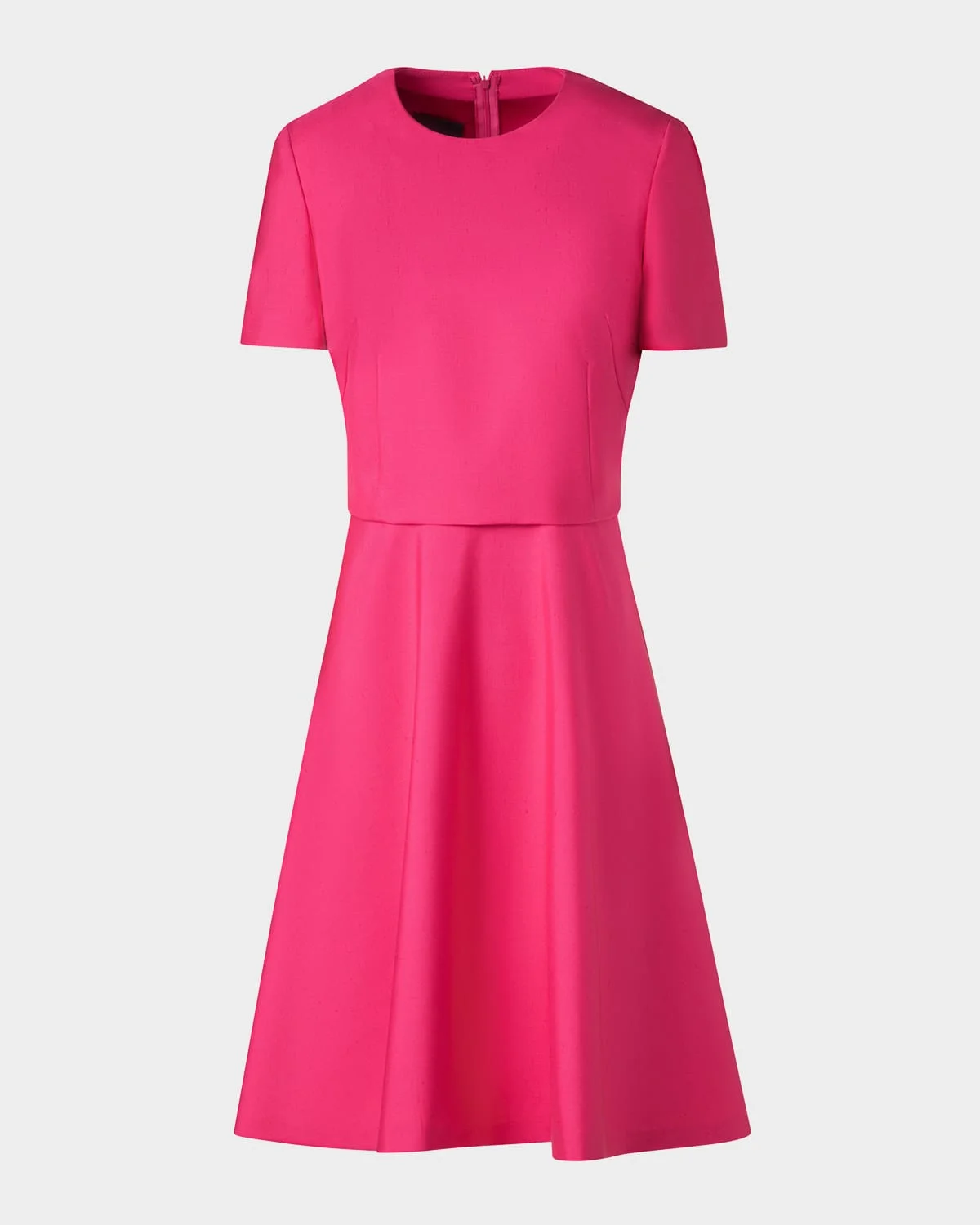 Akris dress featuring a bodice layer with a flared skirt Round neckline Short sleeves Fitandflare silhouette Knee length Invisible back zip Silk/elastane Made in Portugal