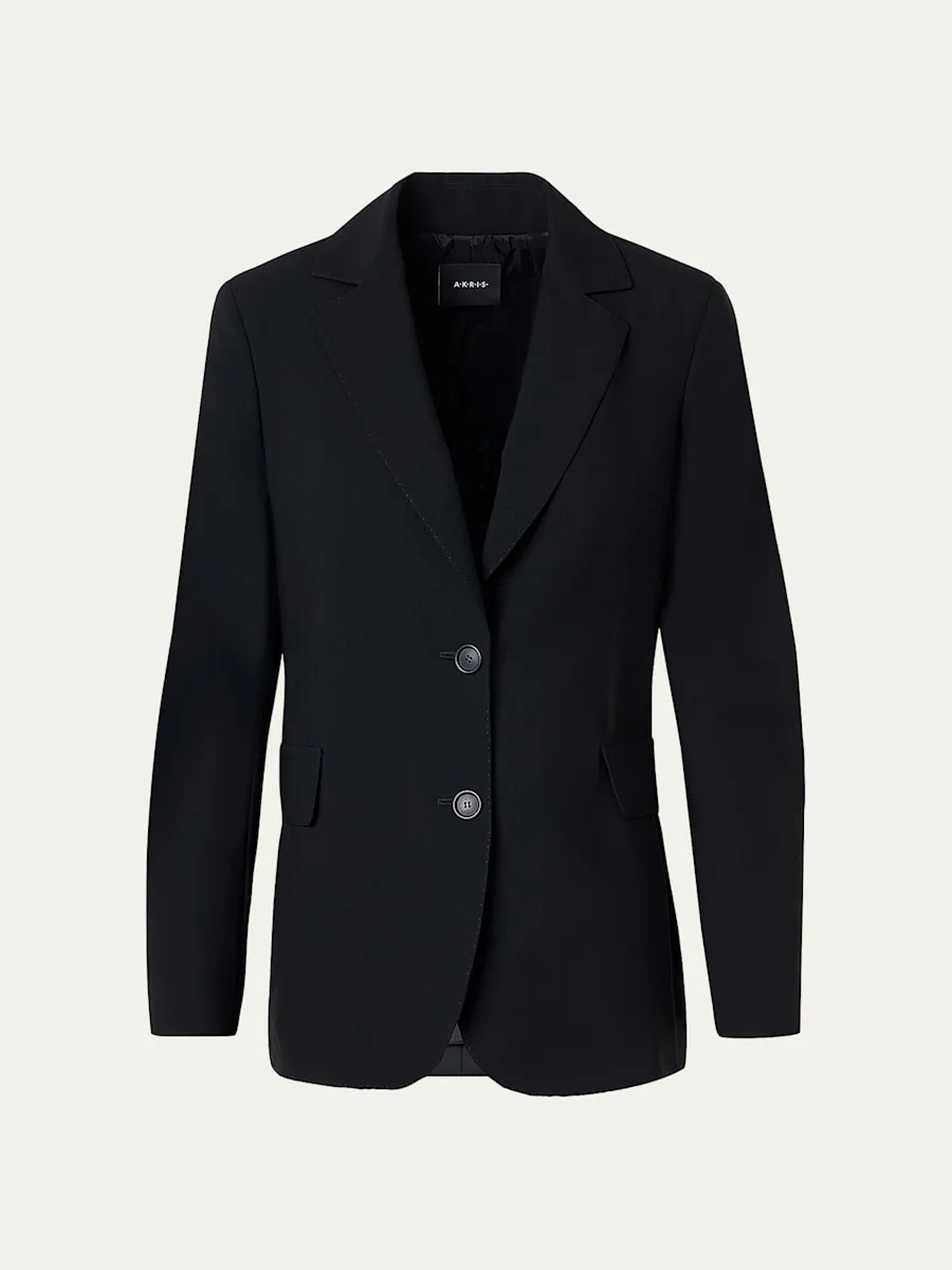 Crafted from cool wool, the "Malik" jacket from Akris features structured shoulders and tonal topstitching Notch lapels; singlebreasted front Long sleeves; slit cuffs Hip flap and side entry pockets Straight fit Hem falls below the hip Double walking vent back Button closure Virgin wool/polyester Lining: Rayon Dry clean Made in Romania SIZE amp; FITModel measurements: 5'10" tall Model is wearing a US size 4/Small