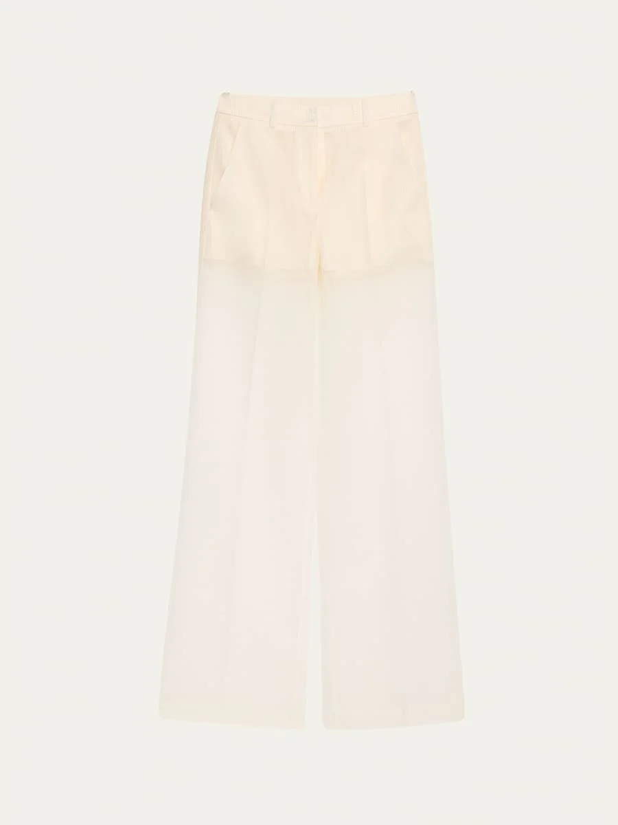 Akris "Melin" pants in sheer techno grid with shorts lining High rise Angled side slip pockets Wide legs Full length Hook/zip fly; belt loops Polyester Lining: Cupro Dry clean Made in Romania Online Inquiries: BGS21_B9QUU| Store Inquiries: #4946598