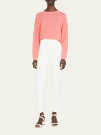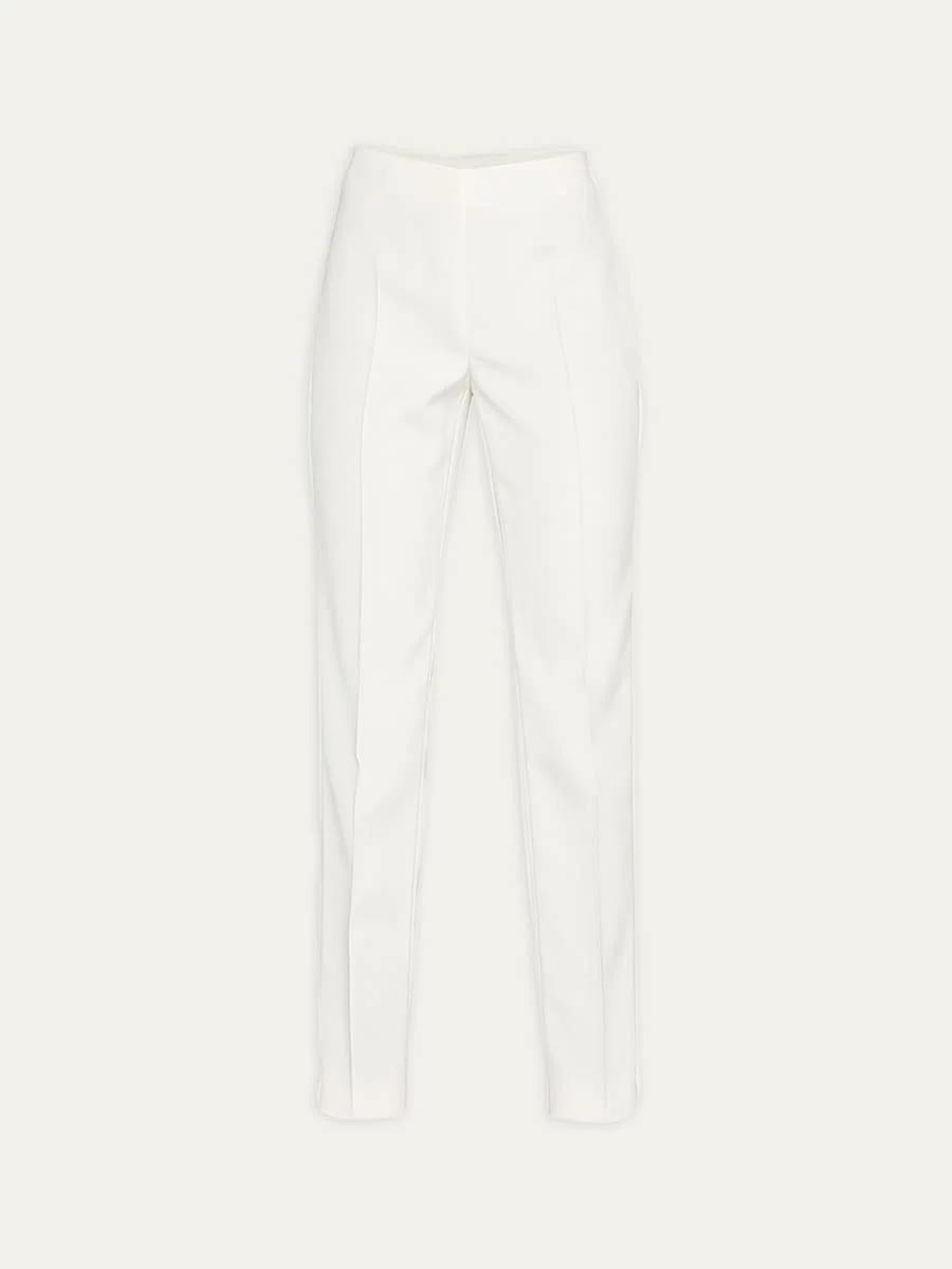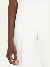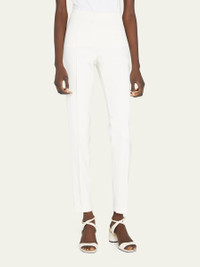 Akris "Melissa" stretchwoven pants. Rise sits below the natural waist. Slimfit legs; full length. Front and back center crease. Hidden side zip. Silk/spandex. Imported.