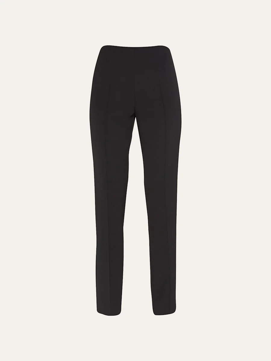 Akris "Melissa" pants in stretch Moracain Approx. 30" inseam Mid rise Fitted through skinny legs Cropped at the ankles Silk/spandex Dry clean Made in Romania Model is 5'10"/177cm. Online Inquiries: BGS21_B8MA9| Store Inquiries: #1569806