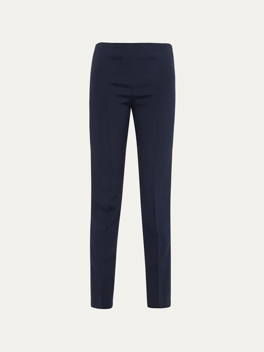 Akris "Melissa" pants in stretch Moracain Approx. 30" inseam Mid rise Fitted through skinny legs Cropped at the ankles Silk/spandex Dry clean Made in Romania Model is 5'10"/177cm. Online Inquiries: BGS21_B8MA9| Store Inquiries: #1569806