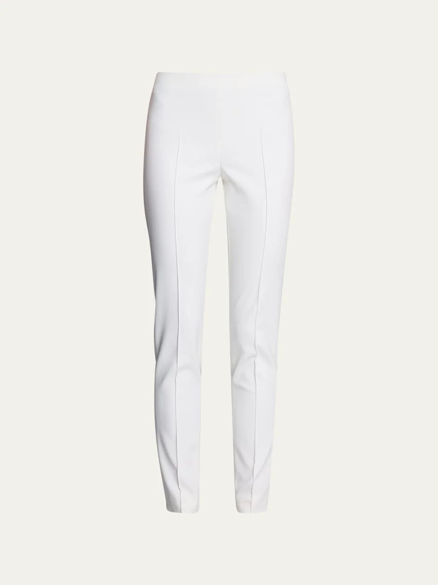 Akris "Melissa" pants in cotton tech. Approx. measurements: 10" rise, 30.5" inseam, 39" outseam; 12" leg opening. Low rise. Seam details at front and back. Slim fit through skinny leg. Side zip closure. Cotton/nylon/spandex. Imported. Model is 5'10"/177cm. Online Inquiries: BGS21_B8MAS| Store Inquiries: #2140400