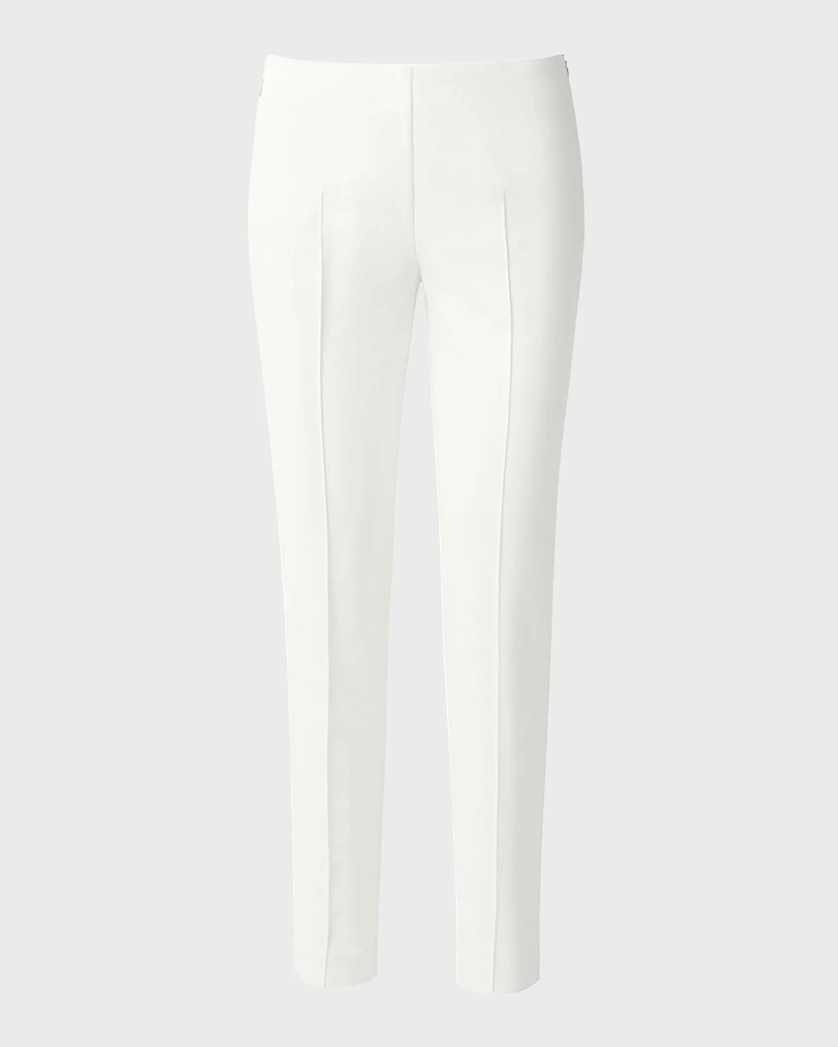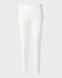 Akris "Melissa" pants in cotton tech. Approx. measurements: 10" rise, 30.5" inseam, 39" outseam; 12" leg opening. Low rise. Seam details at front and back. Slim fit through skinny leg. Side zip closure. Cotton/nylon/spandex. Imported.