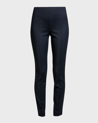 Akris "Melissa" techno slim pants Approx. 30.5" inseam Noyoke waist Smooth, pocketfree silhouette Vertical seams down front and back of legs Slim straight legs Side zip closure Cotton/nylon/spandex Dry clean Made in Romania