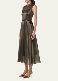 Akris dress in metallic organza High neckline Sleeveless Hem falls below the knee A-line silhouette Invisible back zip Silk/polyester/Lurex® metallic fiber Lining: Viscose/silk Dry clean Made in Romania Model is 5'10"/177cm. Online Inquiries: BGS21_B9F6J| Store Inquiries: #4859291
