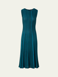 Metallic Silk Rib-Knit Midi Dress