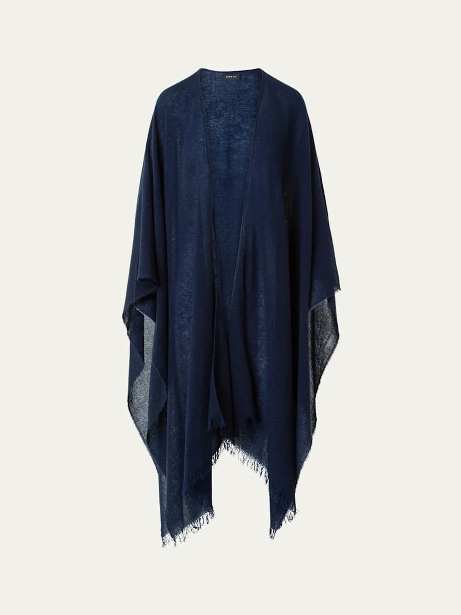 Akris cape scarf in metallic cashmere-blend with fringed edges Approx. 53.15"L x 78.74"W Open front Handkerchief hem May be styled multiple ways Wool/cashmere/polyester/Lurex® metallic fiber Dry clean Made in Romania Online Inquiries: BGS21_D58ZM| Store Inquiries: #5019869