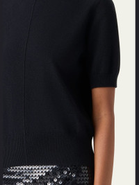 Akris sweater knit in a soft cashmere featuring a center seam and ribbed trim Mock neckline Short sleeves Relaxed fit Ribbed cuffs and hem Back zip Cashmere Made in Romania Online Inquiries: BGS21_BATDR| Store Inquiries: #5267402
