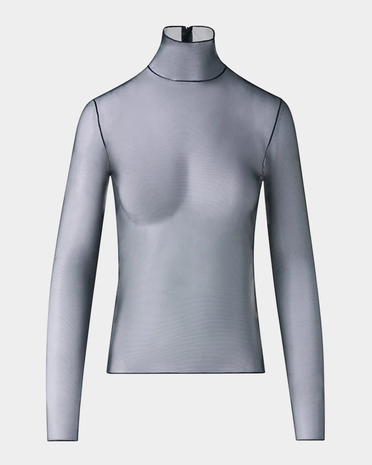 - Akris shirt in sheer stretch tulle - Mock neckline - Long sleeves - Fitted - Back zip - Nylon/polyamide/elastane - Dry clean - Made in Romania