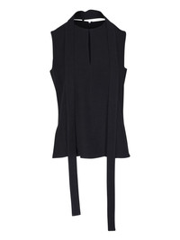 linen-blend top Highlights - Black - Concealed rear zip fastening - Attached scarf - Sleeveless - Side slits Made in United States Composition Linen/Flax 70%, Wool 30% Washing instructions Dry Clean Only