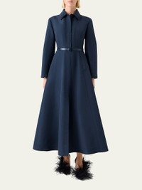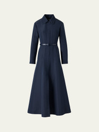 Akris ottoman silk shirtdress featuring a lambskin leather belt with a trapezoid buckle Point collar; concealed zip closure Long sleeves with button cuffs Side split pockets Yoked back Full length A-line silhouette Silk Lining: Viscose/elastane Dry clean Made in Romania Online Inquiries: BGS21_BA4PR| Store Inquiries: #5035716