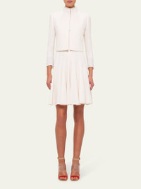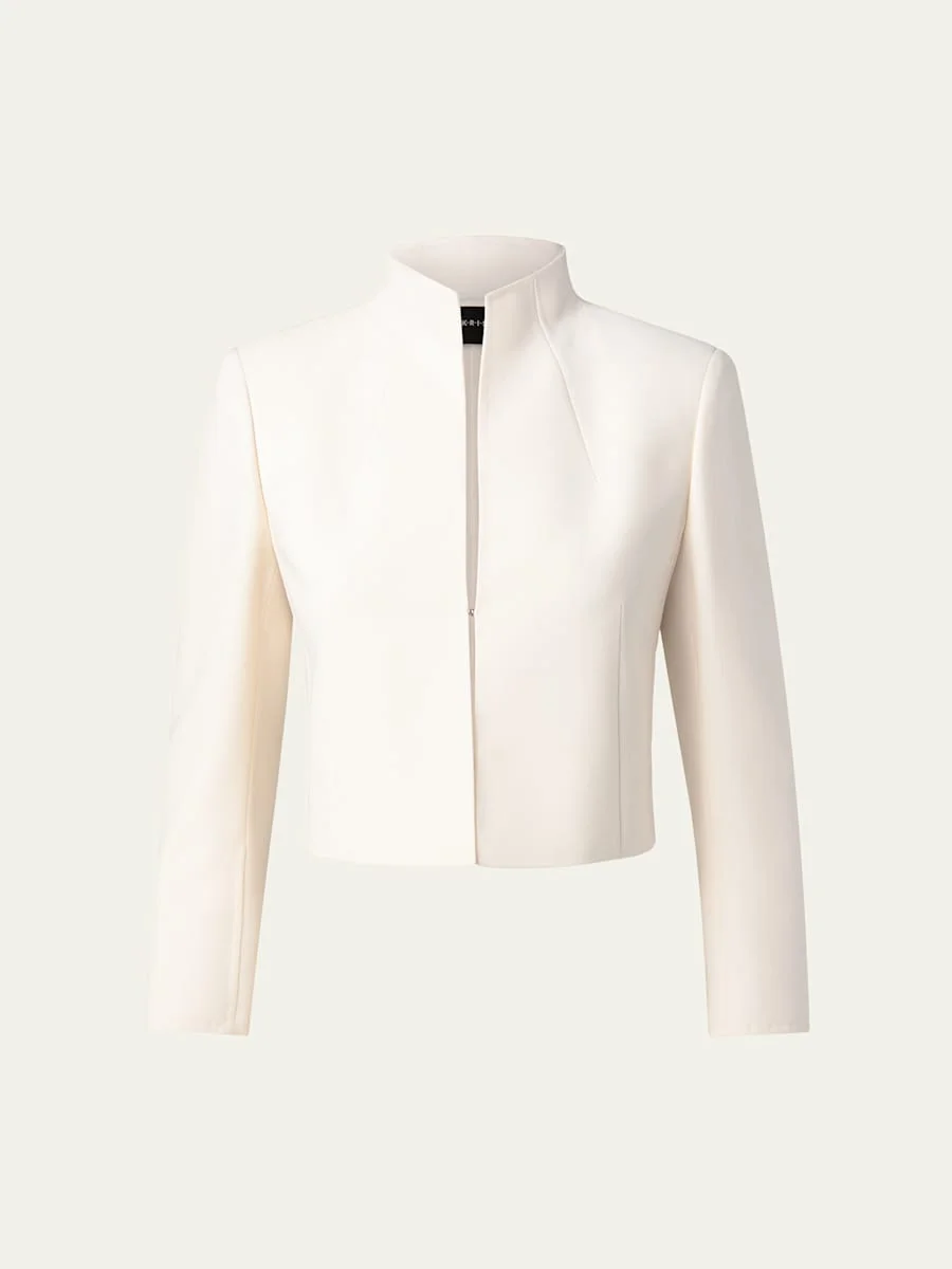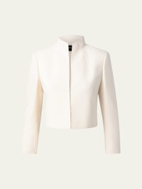 Akris "Pandora" jacket in double-face wool. Mock neckline; hook-and-eye front. Bracelet sleeves. Cropped, slim fit. Straight hem. Wool/nylon. Lining, acetate/spandex. Imported. Model is 5'10"/177cm. Online Inquiries: BGS21_TR31L| Store Inquiries: #1909802