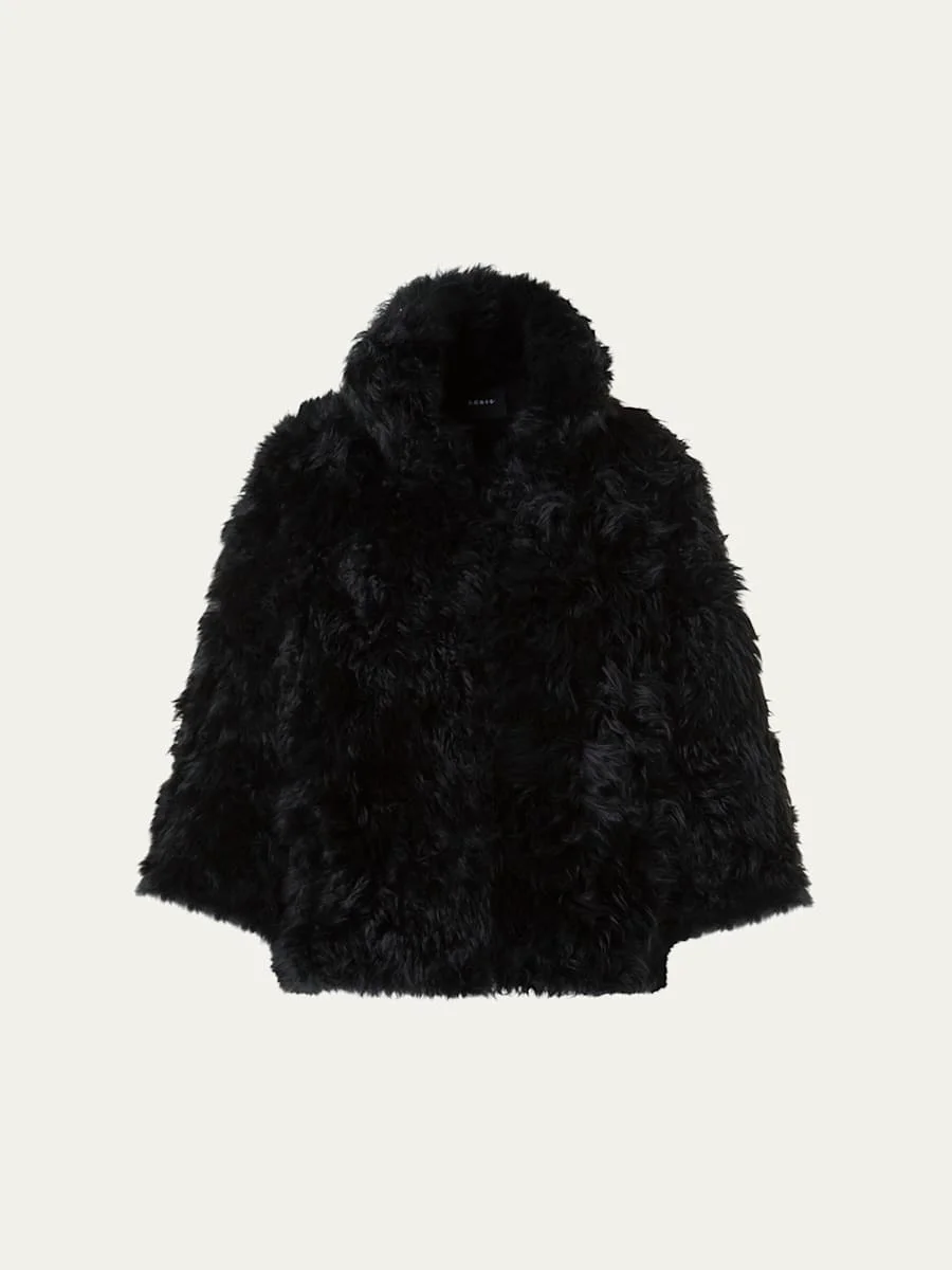Akris "Phila" jacket in natural and dyed long-haired kid goat shearling ( Stand collar; single-breasted front Bracelet sleeves Straight fit Hip length Shearling Lining: Silk/elastane Dry clean Made in Romania Online Inquiries: BGS21_BA269| Store Inquiries: #5019816