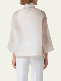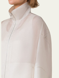Akris "Philia" jacket in Panama silk organza Stand collar Dropped shoulders Wide elbow-length sleeves Yoked back Hip length Two-way front zip closure Silk Made in Romania Online Inquiries: BGS21_B9JZ9| Store Inquiries: #4888067