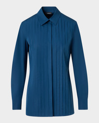 Pleated Front Cotton Poplin Button-Down Shirt