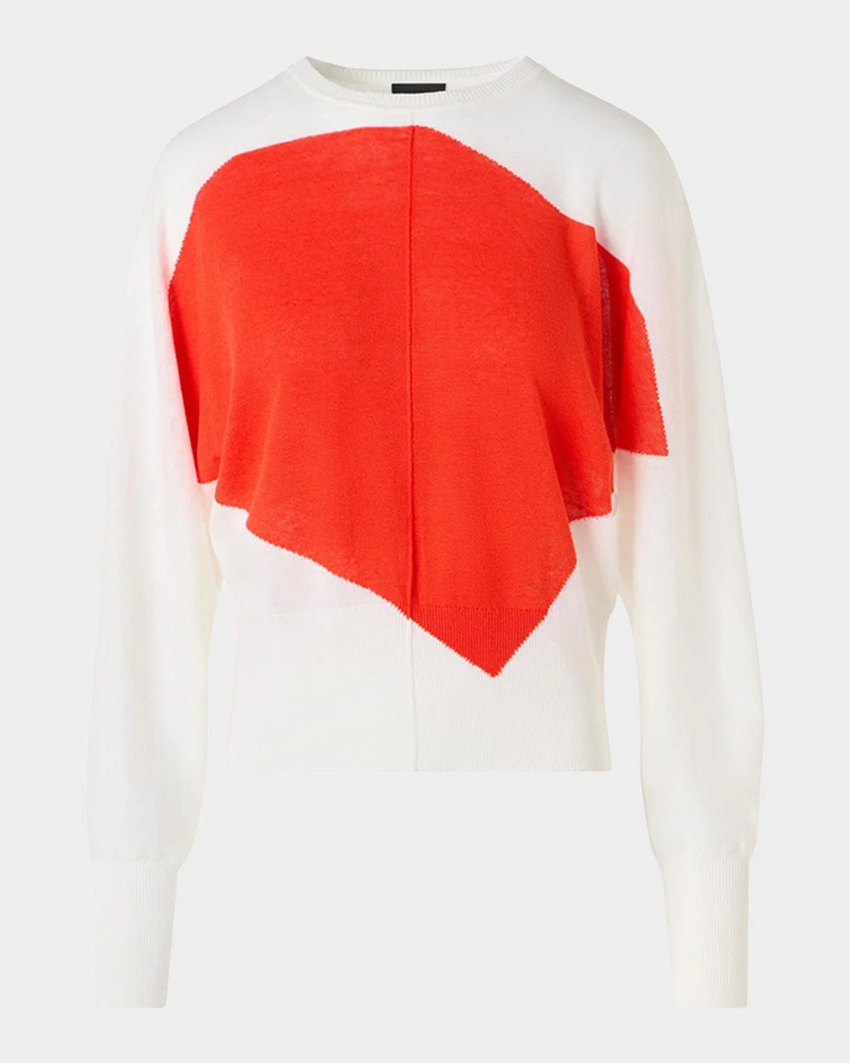 This Akris & nbsp;sweater is crafted in a lightweight linen-cotton knit, embellished on the front with a large colorblock polygon intarsia Crew neckline Long sleeves Ribbed cuffs and hem Relaxed fit Pullover style Linen/cotton Dry clean Made in Romania SIZE & FITModel measurements: 5 & apos;10" tallModel is wearing a US size 4/Small