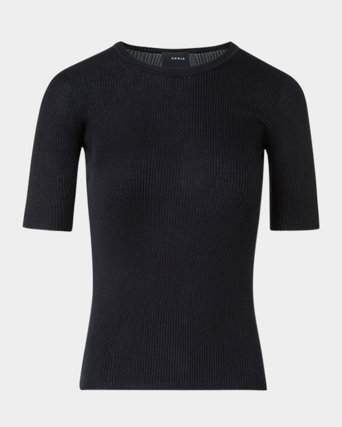 - Akris ribbed seamless sweater in silk-cotton - Crew neckline - Short sleeves - Fitted - Hem sits at the hip - Pullover style - Silk/cotton - Imported