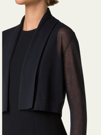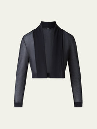 Akris sheer cardigan Shawl collar; open front Long sleeves Straight fit Cropped length Cotton/nylon/polyamide Dry clean Made in Romania Model is 5'10"/177cm. Online Inquiries: BGS21_B9G2B| Store Inquiries: #4865941