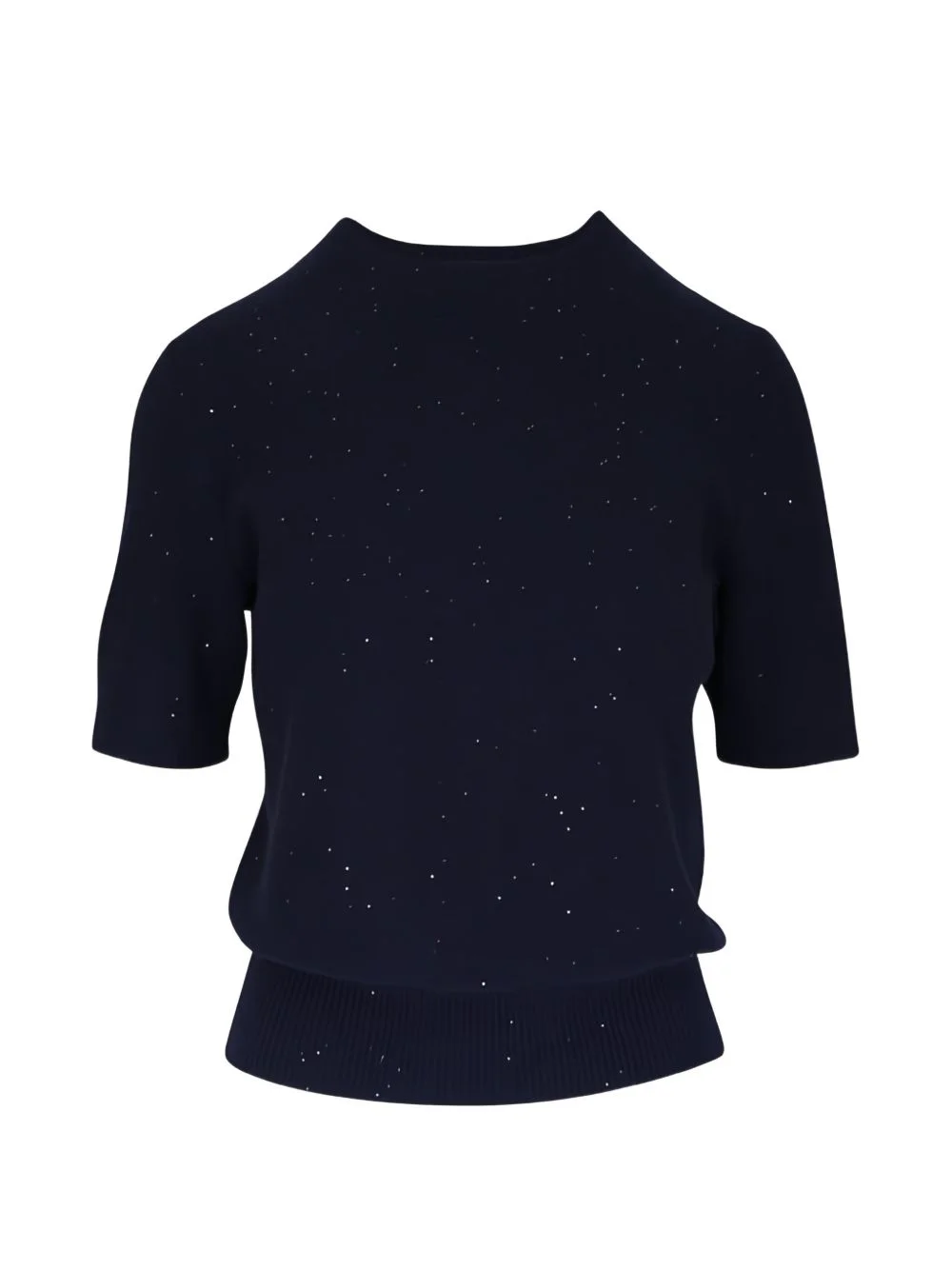 short-sleeve knitted sweater Highlights - Navy blue - Short sleeves - Round neck - Fitted hem Made in United States Composition Fabric 100% Washing instructions Read Manufacturer Guidelines