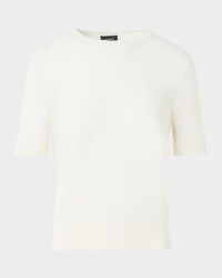 Silk-Cotton Pointelle Knit Short-Sleeve Sweater