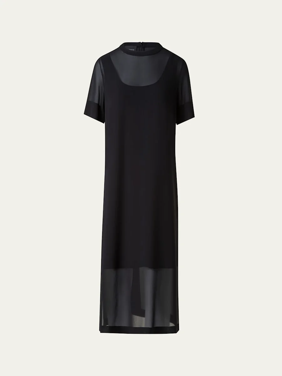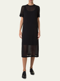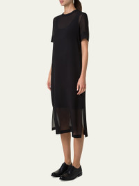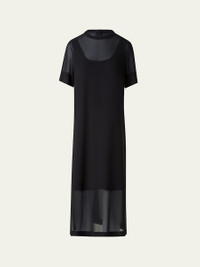 Akris tunic dress crafted from silk georgette Round knit neckline Short sleeves Mini side slits Hem hits around the knee Slipover style Silk Dry clean Made in Switzerland Online Inquiries: BGS21_B9JZF| Store Inquiries: #4888074