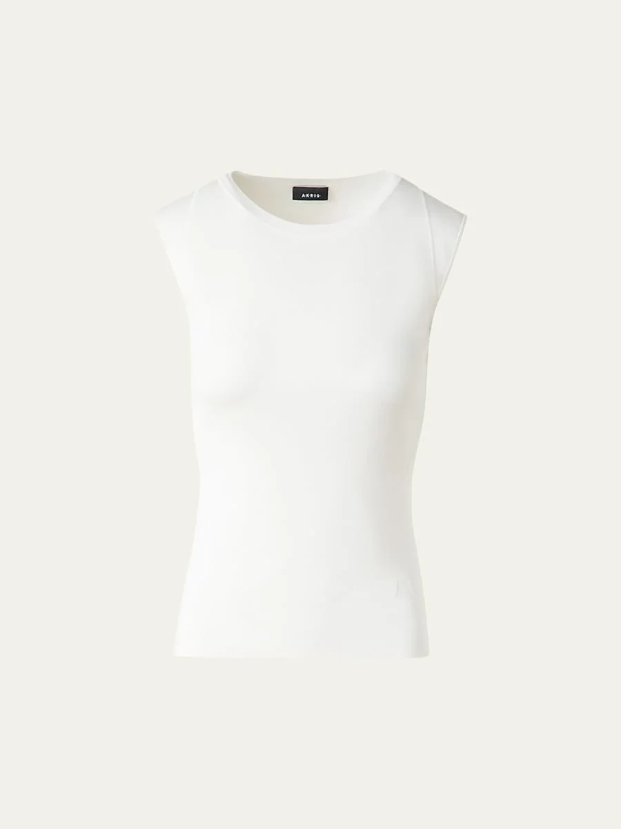 Akris stretchy knit top defined by a streamlined silhouette Crew neckline Sleeveless Hip length Fitted Pullover style Silk Made in Romania Online Inquiries: BGS21_BAK46| Store Inquiries: #5172717