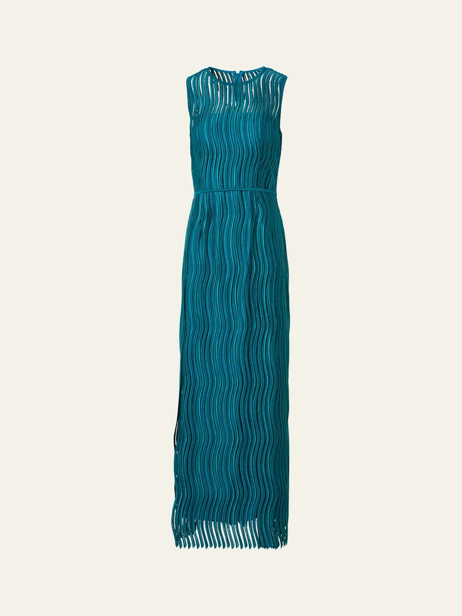 Sleeveless Techno Wave Guipure Side-Slits Gown