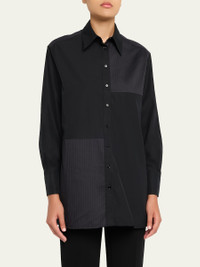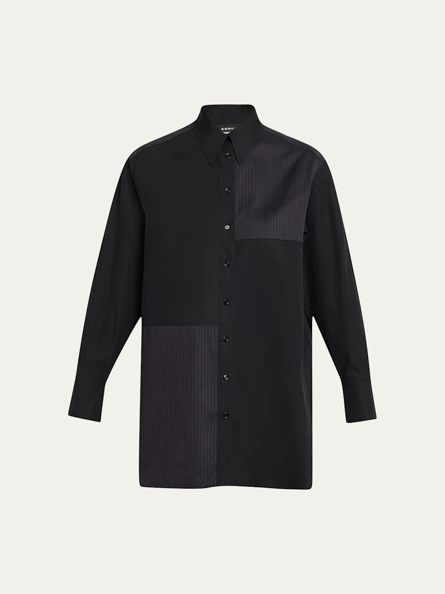 Akris cotton poplin shirt featuring stitched pleats insets Point collar; button front Long sleeves; button cuffs Yoked back; inverted pleat Side split pockets Oversized fit Hem falls below the hip Cotton Dry clean Made in Romania Online Inquiries: BGS21_B9UE1| Store Inquiries: #4970730