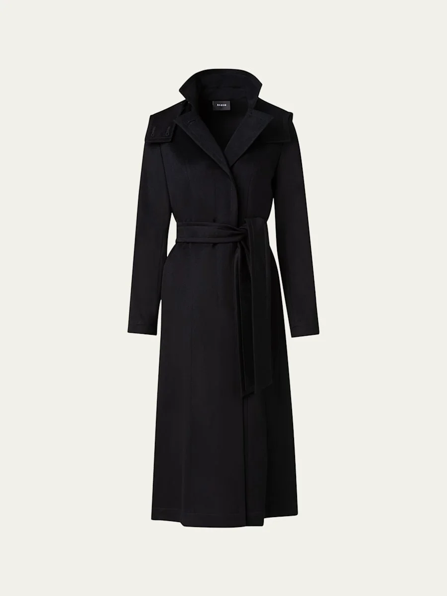 Akris storm system coat Stand collar; button front Long sleeves Side seam pockets Self-tie waist Tailored fit Mid-calf length Cashmere Silk lining Made in Italy Online Inquiries: BGS21_B71YJ| Store Inquiries: #4268276
